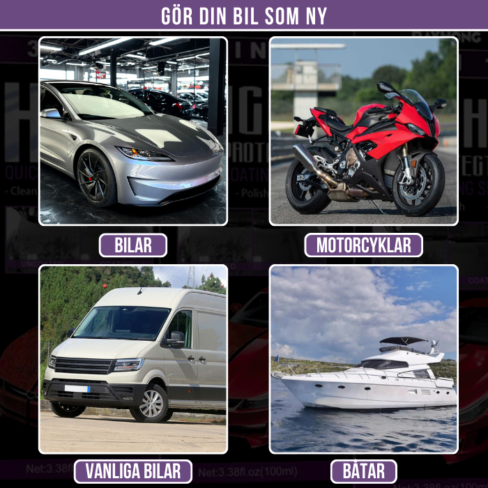 En extremt hållbar och långvarig produkt – perfekt för fordon och andra fasta ytor som kräver maximal glans och skydd. Säker för alla ytor på fordon, båtar, motorcyklar och fyrhjulingar.