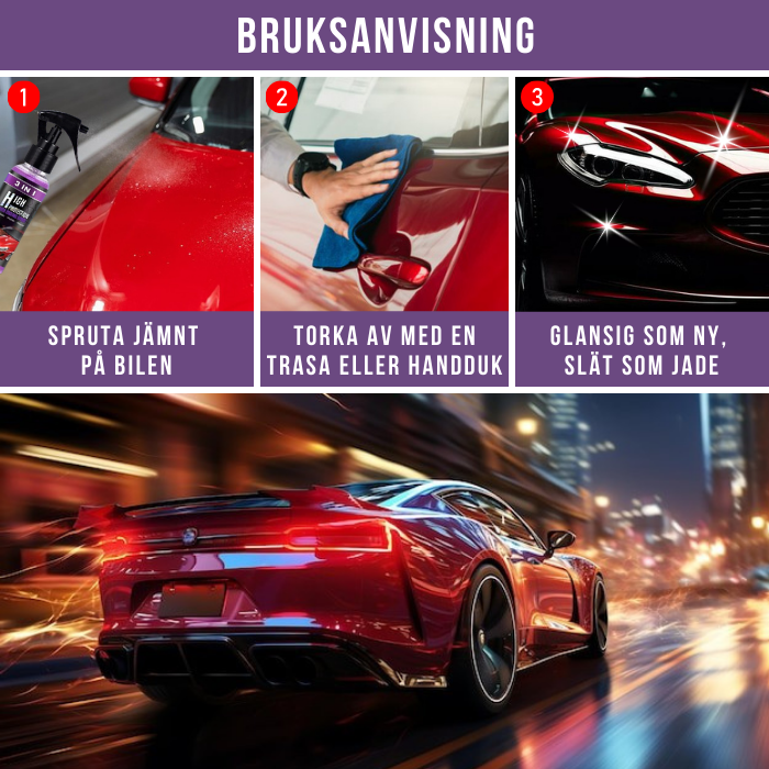 Rengör, återställ och ge glans på några sekunder. Vår 3-i-1 snabblackskyddsspray möjliggör vattenfri rengöring, ger ett rent utseende och får bilen att glänsa som ny.